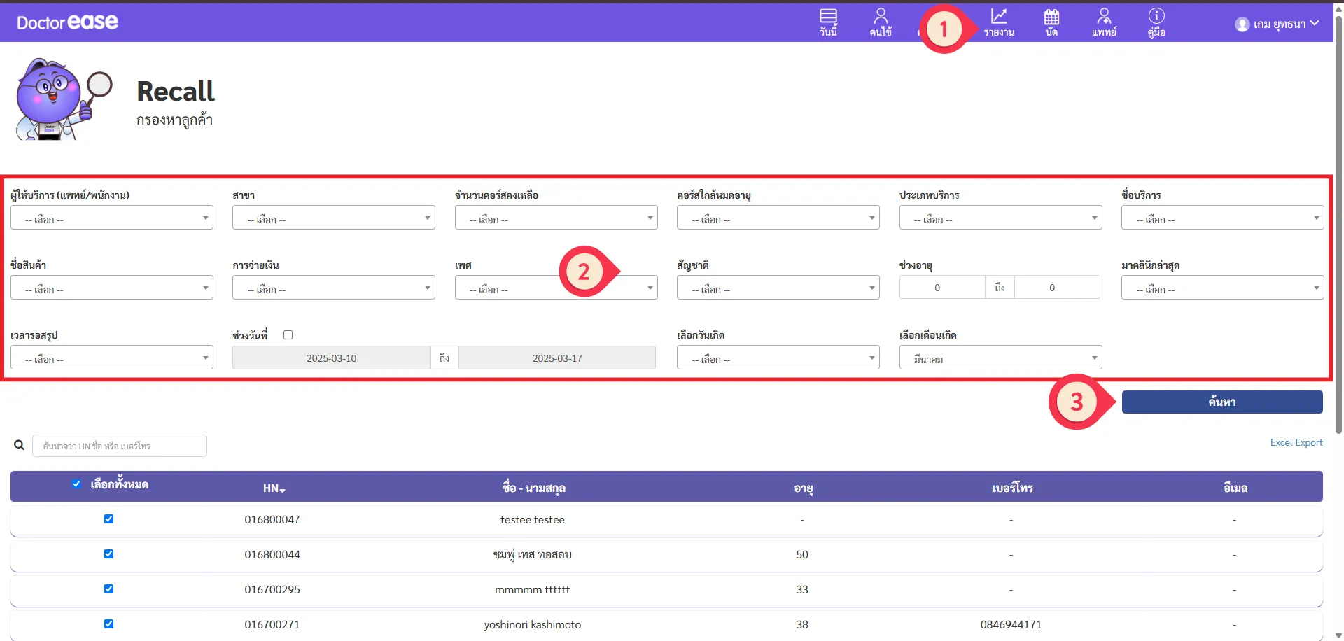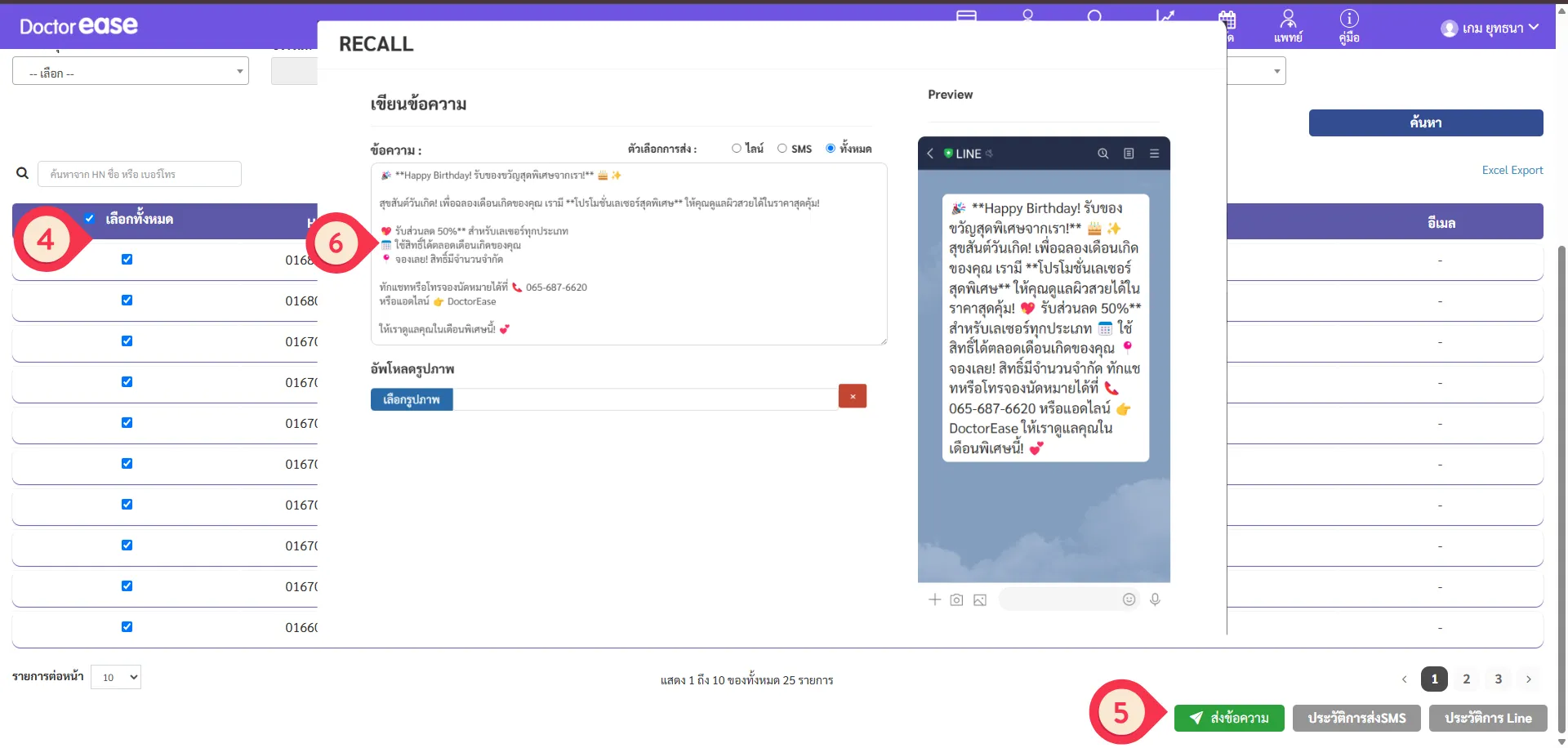 ฟีเจอร์ Recall Customer ใน DoctorEase