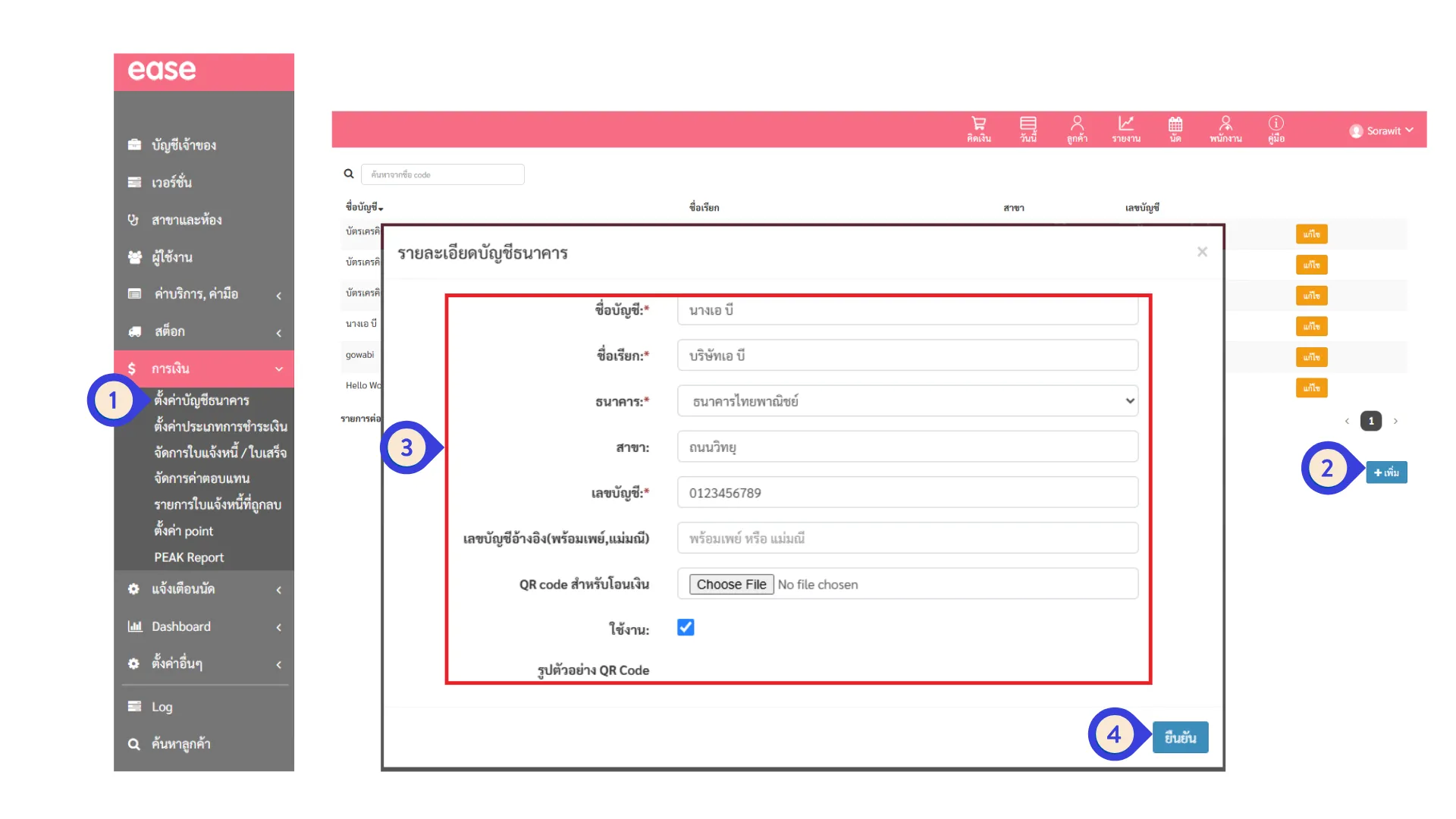 สามารถเพิ่มบัญชีธนาคารสำหรับรับชำระเงินได้ง่ายๆ ผ่าน การตั้งค่า ตามขั้นตอนต่อไปนี้: